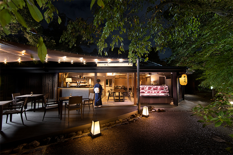 古都の風情漂うこの地は、四季折々の自然美と歴史的情緒が融合する場所。春には円山公園の枝垂れ桜、秋には鮮やかな紅葉が広がり、店内から望む景色とともにA5ランク和牛を堪能いただけます。夜にはライトアップされた幻想的な光景が広がり、ここでしか味わえないひとときを演出します